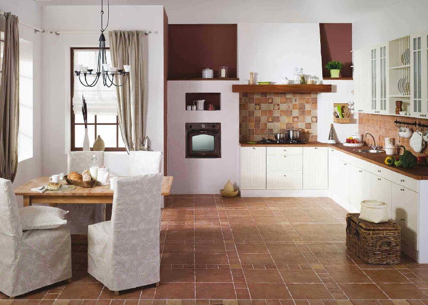Своими свойствами плитка прекрасно подходит для использования на кухне. Она часто применяется для оформления этого помещения.
