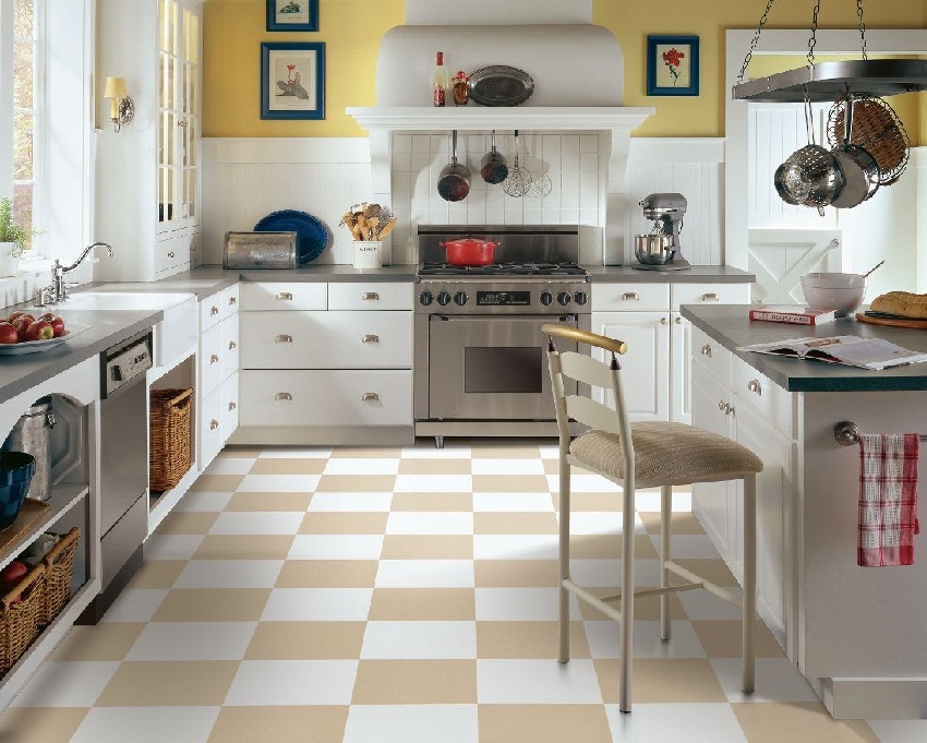 Не менее сложная задача – выбор и укладка напольной плитки на кухне