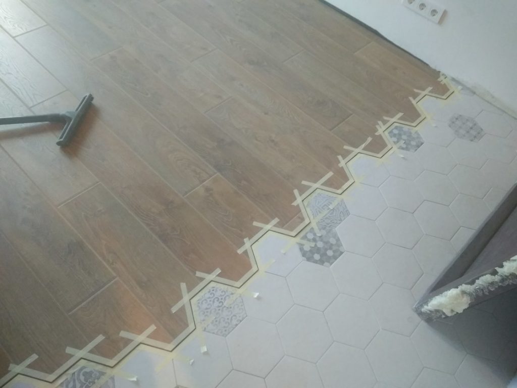 В каком месте делать стыковку плитки и ламината на кухне