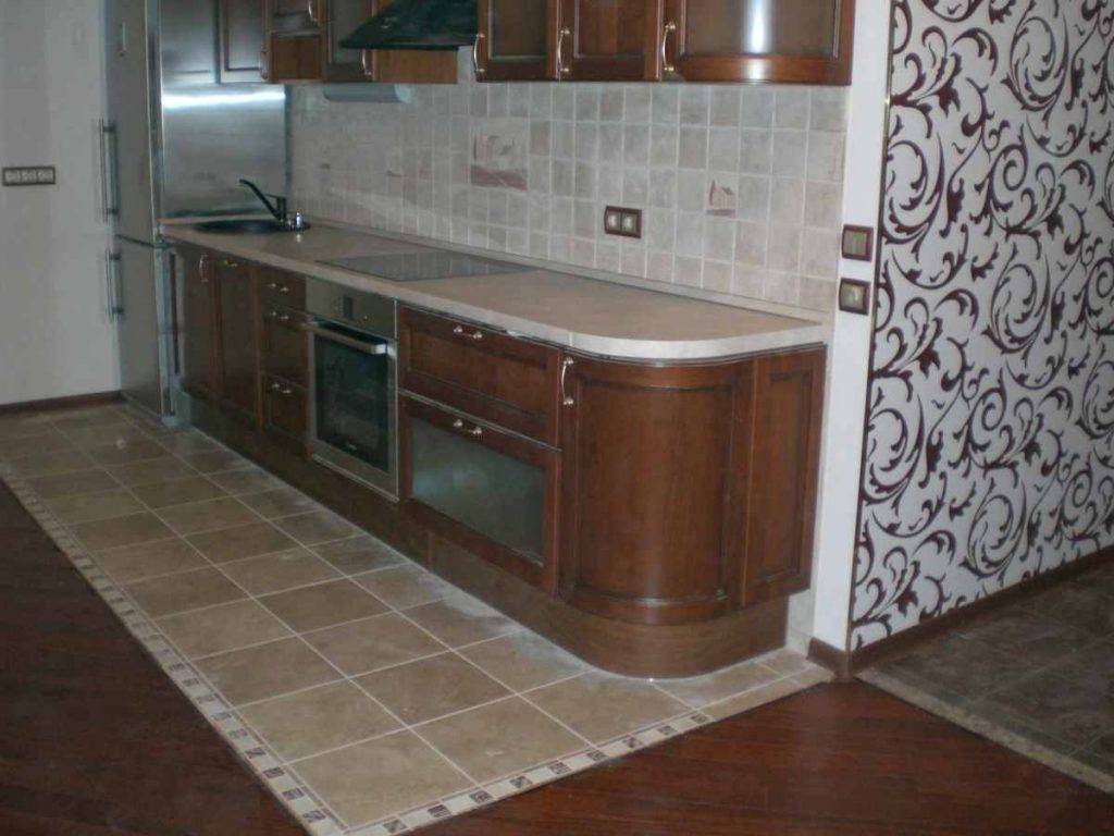 Варианты комбинирования пола на кухне с плиткой и ламинатом