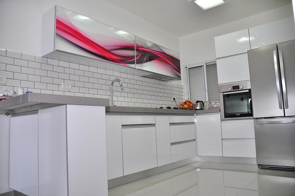 3. Если кухонная мебель и техника, в основном, представлены светлыми оттенками, то попробуйте «разбавить» однотонность в интерьера ярким сочным фартуком. Облицуйте его с помощью «кабанчика» насыщенных оттенков: ярко-зеленого, морского, солнечного желтого или леденцовых оттенков (мятного, голубого, лилового и др.).