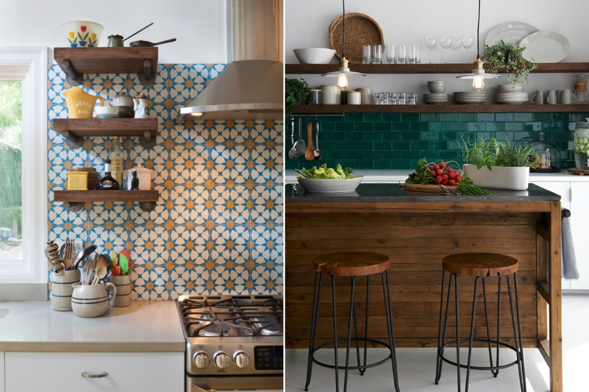 Для деревенских кантри и прованса подойдут зеленый или плитка желтый кабанчик. Плитка в кирпичном стиле поможет завершить деревенский образ кухни и станет её изюминкой.