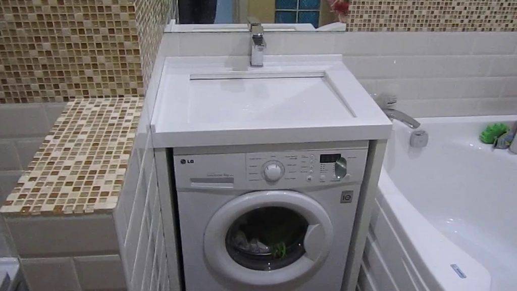 При его выборе нужно понимать, что к высоте выбранной машины нужно будет добавить как минимум 25 см. Это высота раковины и размеры зазора между плоскостями приборов.Несколько сложнее определиться с глубиной прибора. Он должен быть полностью закрыт раковиной, а лучше всего, чтобы чаша выступала за границы стиральной машины в виде небольшого козырька.
