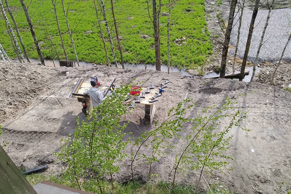 Так выглядело рабочее место во дворе, где разрезали, сваривали и шлифовали профили