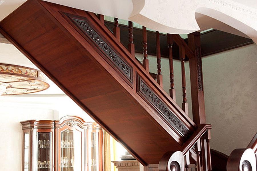 Первая проблема, с которой сталкивается заказчик деревянной подъемной конструкции, — выбор материала. Самые дорогие и качественные изделия – конструкции из красного дерева. Клиенты, для которых стоимость заказа – не ведущий показатель, выбирают этот вариант и украшают путь на второй этаж художественной резьбой. Ждать произведение искусства приходится долго: мастер-краснодеревщик уделяет каждой работе несколько месяцев. Позволить себе такой элемент интерьера могут не все: творения из красного дерева имеют высокую стоимость.