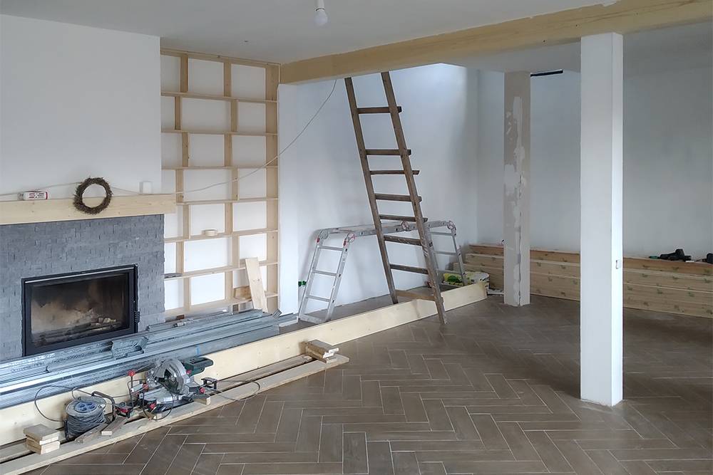 Это произошло из-за того, что в процессе строительства дома я уменьшил потолочный проем — он стал меньше, а толщина перекрытия больше, чем планировалось. Калькулятор не учитывал эти нюансы. Пришлось пересчитывать лестницу на ходу.