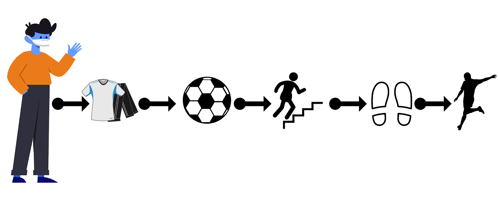 В случае с Алексеем, дополнительно понадобилось бы прописать и то, что он идёт на выбранную спортивную площадку или стадион, зовёт с собой друзей и т. д.