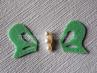 Из фетра вырезаем два крылышка бабочки, из бусинок склеиваем ее тело.