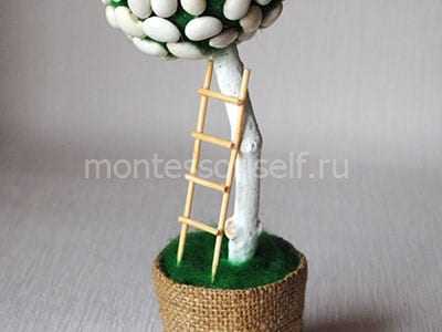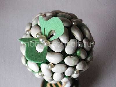 Шаг 8. Когда основание топиария будет готово, вам останется только задекорировать его мхом, сизалем, тем же горошком или любой другой крупой.