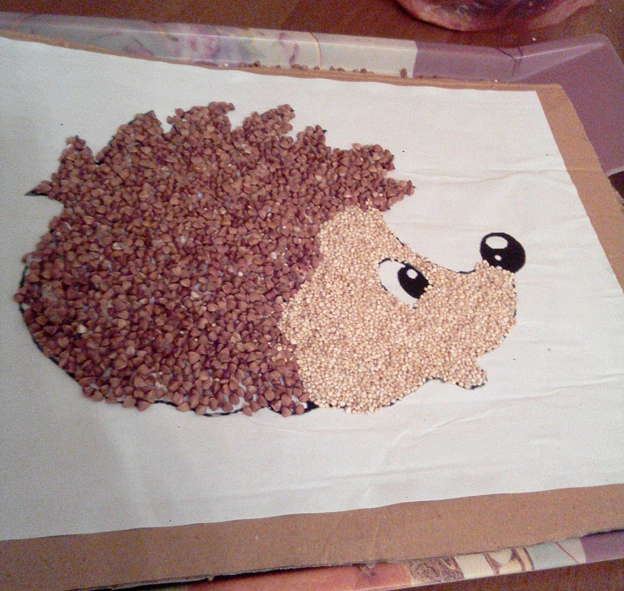 - Продумать, какие крупы подойдут для заполнения фрагментов, можно их предварительно покрасить.