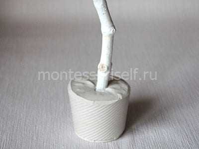 И погружаем в него заготовку топиария. Ждем, когда алебастр застынет. Лишнюю часть пластикового стаканчика отрезаем.
