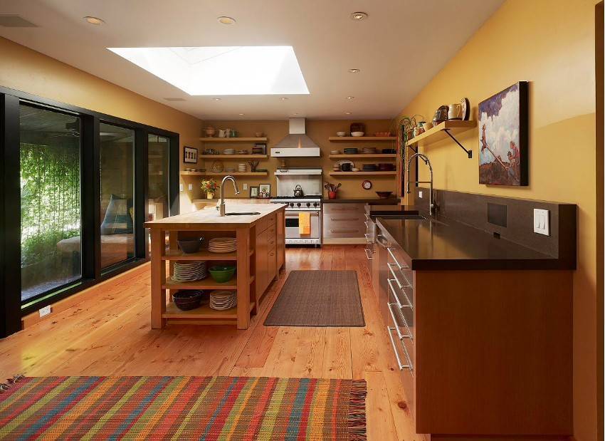 В деревенском доме большое значение имеет и мастерски выложенный камин. Это и функционально, и эффектно. Но в деревянном здании открытый огонь очень опасен. Поэтому возведением камина должны заниматься только профессионалы.