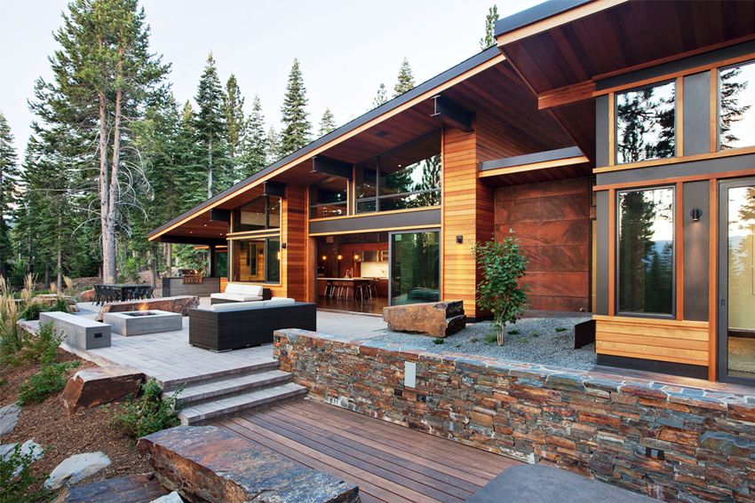 Частные дома с панорамными окнами демонстрируют очень привлекательный и оригинальный внешний вид фасада