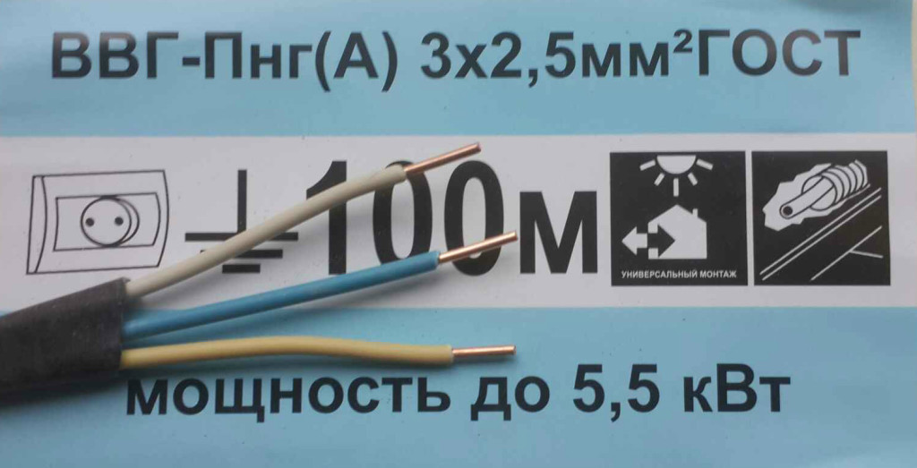 - Все электрические кабели должны быть с медными жилами. Прекрасно подходят электрические кабели марок ВВГ, NYM (НЮМ).