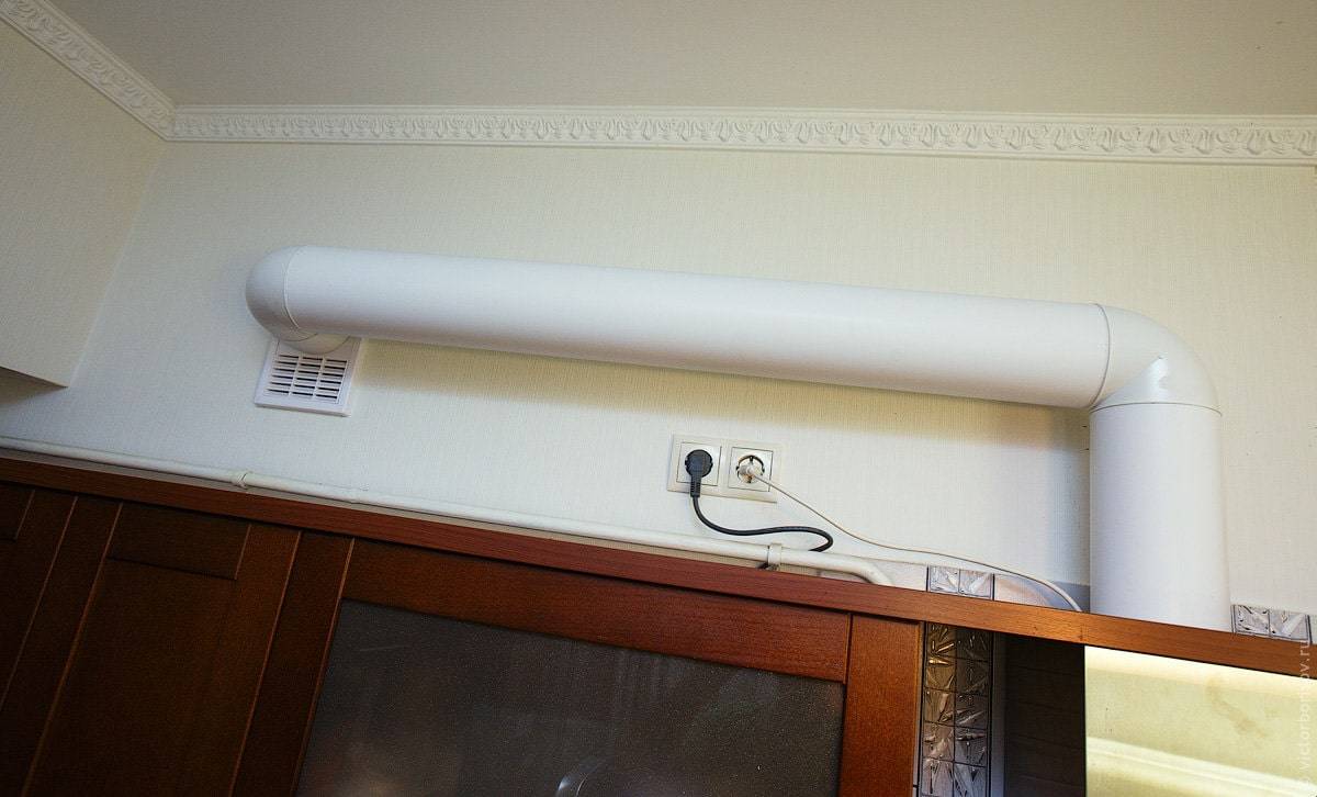 Труба для вытяжки на кухне не ставится в помещениях, где есть газовые нагреватели с открытой системой сгорания или колонки. Работа проточной вытяжки приведет к появлению обратной тяги в газовом дымоходе, что грозит отравлением продуктами сгорания.