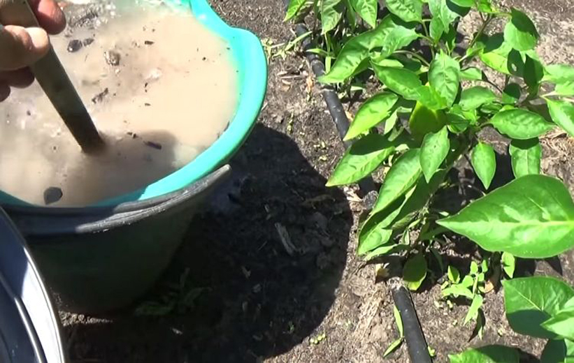 Когда смесь будет готова, ставим ее в теплое место на 7 дней, периодически помешивая. Перед удобрением закваску разводим водой (пропорции 1:10). На каждый куст томатов используют по 1 л готового раствора.