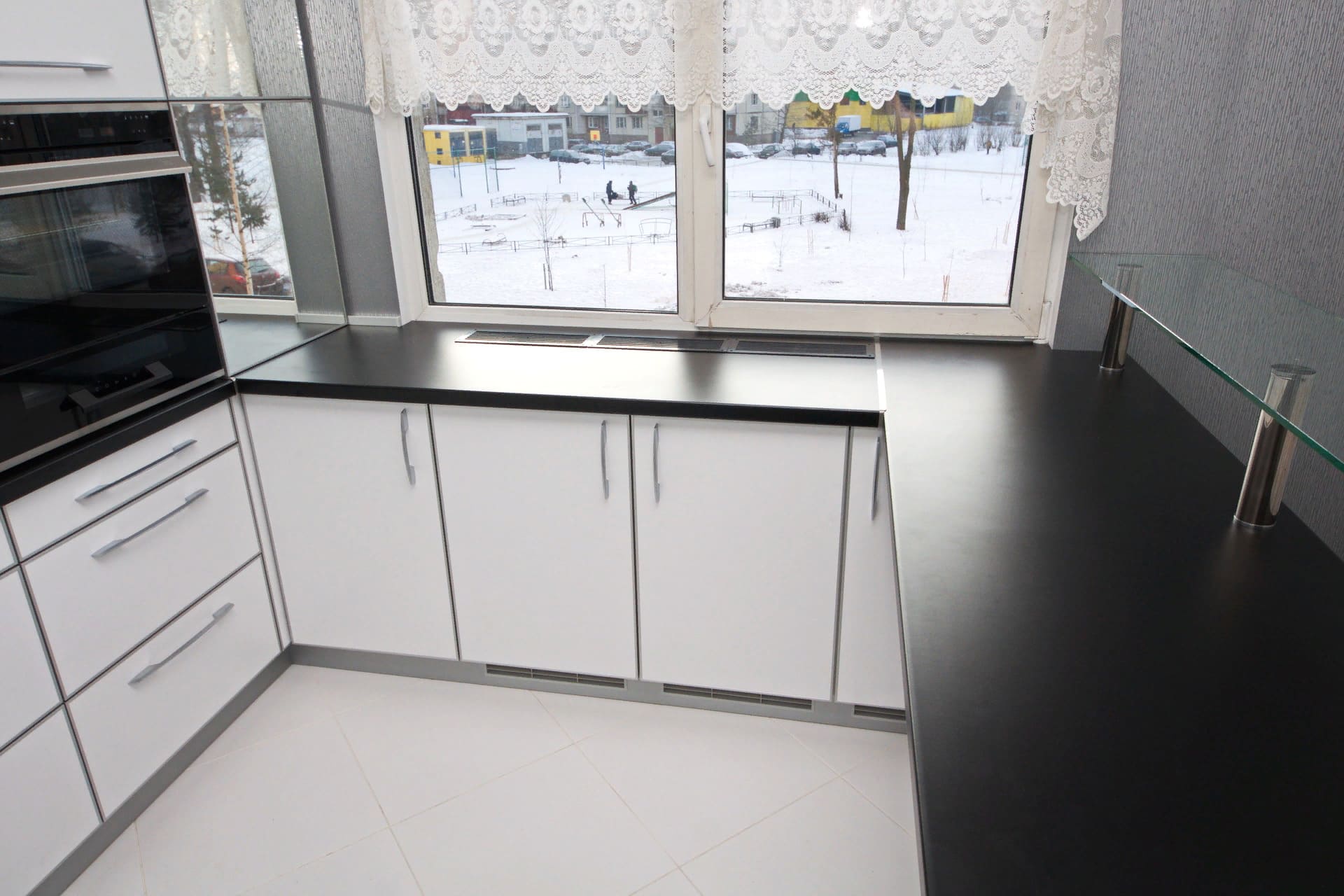 - Окно должно быть выше подоконника-столешницы не менее чем на 1,5 см.