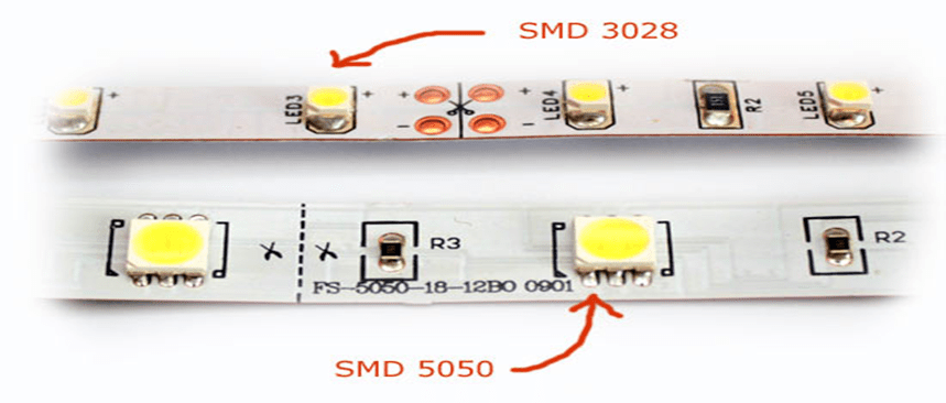 - мощность. Параметр прямо пропорционально зависит от количества диодов, расположенных на одном метре ленты, и размеров одного диода;