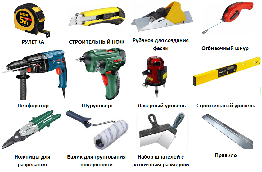 Инструменты, которые нам понадобятся для монтажа потолка из ГКЛ