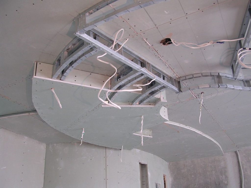 - самый сложный с технической точки зрения вид потолков из гипсокартона;