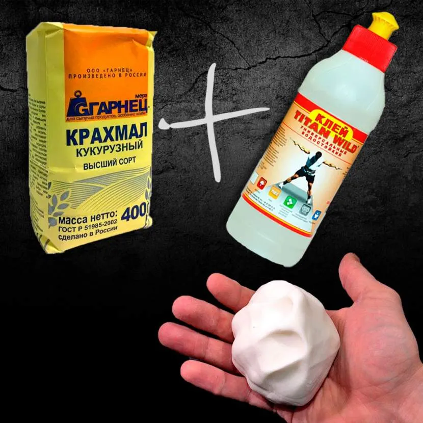 - 250 грамм кукурузного крахмала плюс ПВА, такое же количество