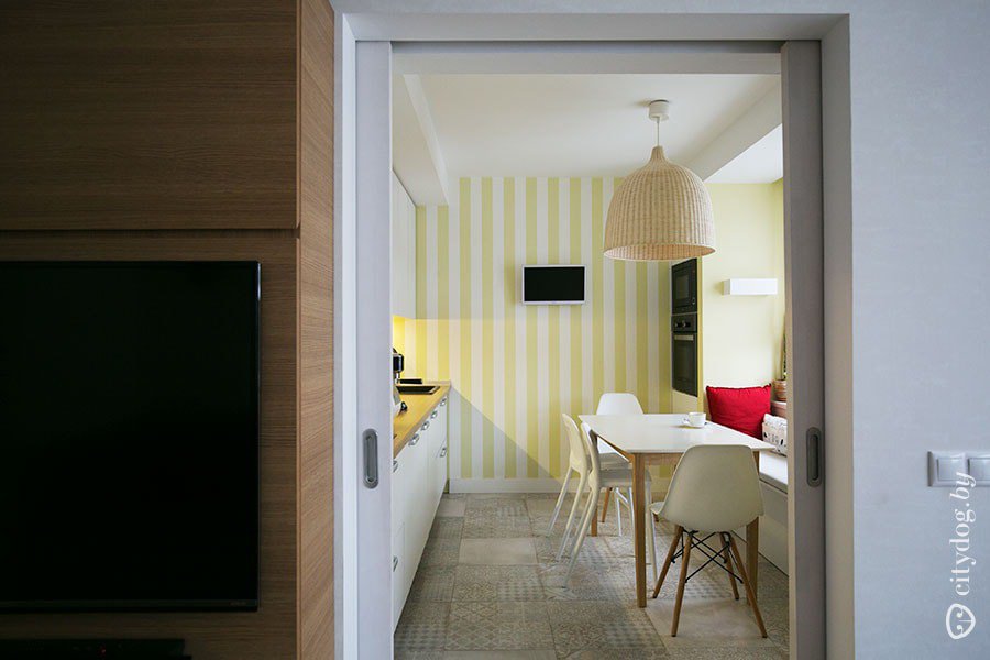 Стена, располагающаяся напротив обеденной зоны, ‑ самое распространенное место.