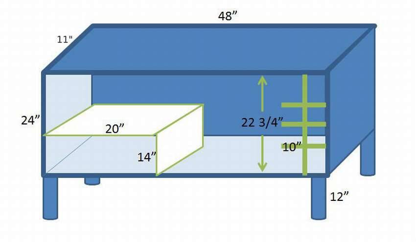 По бокам готовая рама обшивается досками. Из листа фанеры вырезается задняя перегородка и крепится к общей конструкции. Для изготовления полок можно использовать как древесину, так и листы ДСП, ДВП. Их ширина и глубина должна в точности совпадать с аналогичными внутренними параметрами изделия