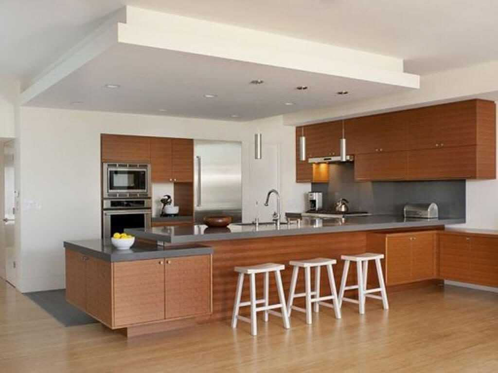 Подвесной потолок из гипсокартона на кухне можно выполнить различными способами. Это может быть одноуровневая плоская конструкция, ничем не отличающаяся от обычного потолка. Такой традиционный дизайн впишется в любой интерьер.