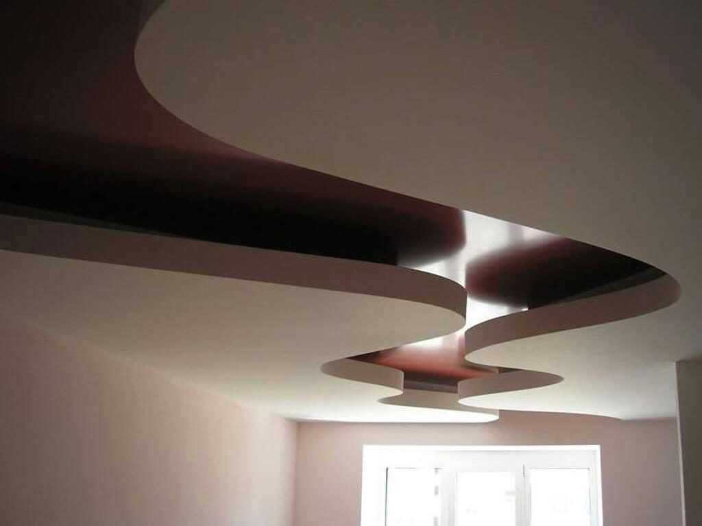 Разноуровневые модели с перепадами в виде прямых или изогнутых линий, смотрятся очень эффектно и являются самостоятельным элементом декора.