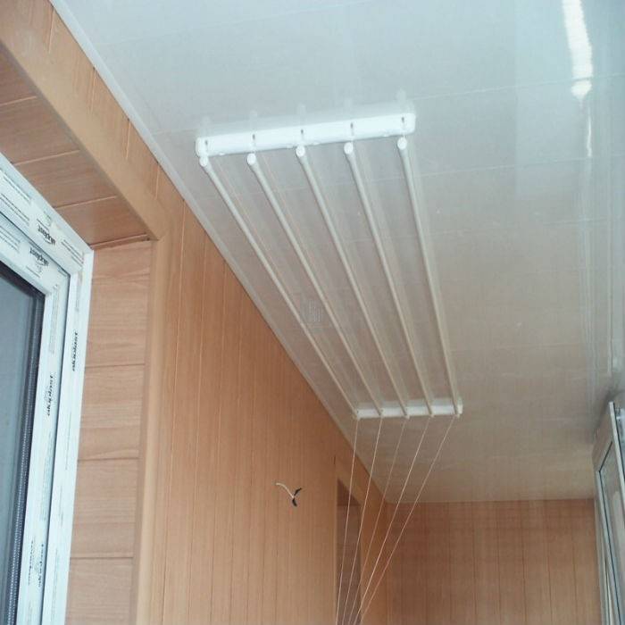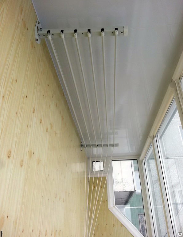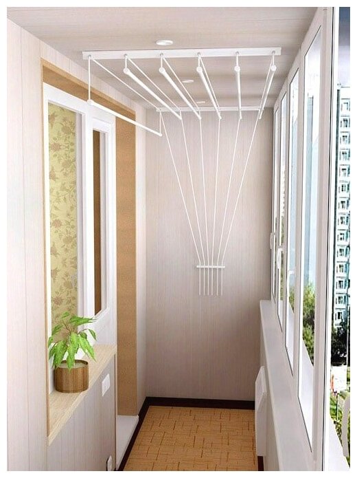 Так выглядит потолочная сушилка Лиана в интерьере балкона