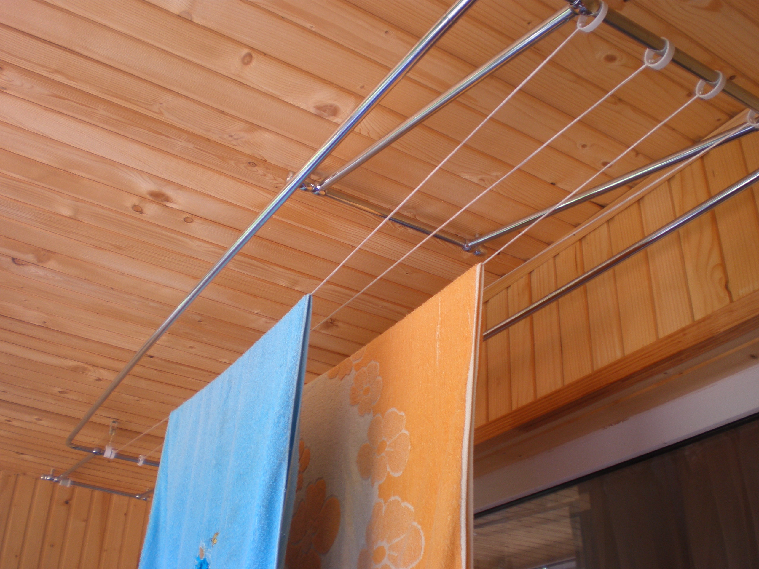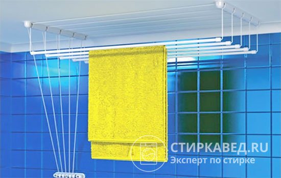 Лучше всего ставить потолочную сушилку в ванной комнате или на балконе