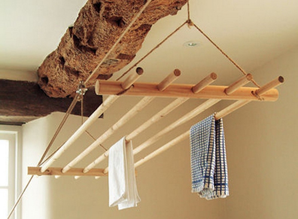 На основе такой конструкции можно создавать очень интересные и оригинальные сушилки, которые станут дополнительным украшением интерьера. А на видео представлен другой способ изготовления потолочной сушилки, более сложный, но вполне доступный начинающему мастеру.