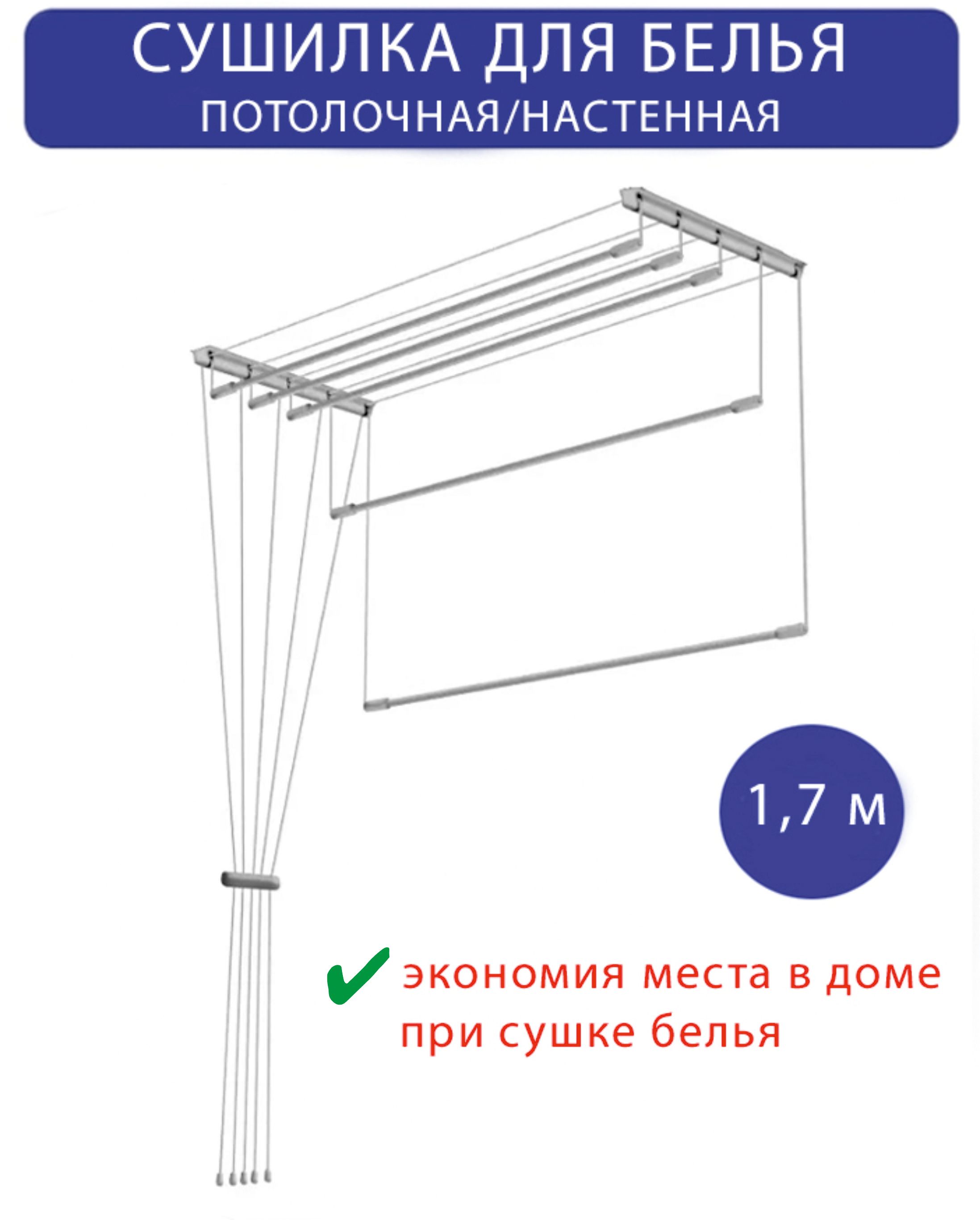 Это поможет вам выбрать правильный размер. Длина потолочной сушилки обычно составляет от 1 до 2,5 метров