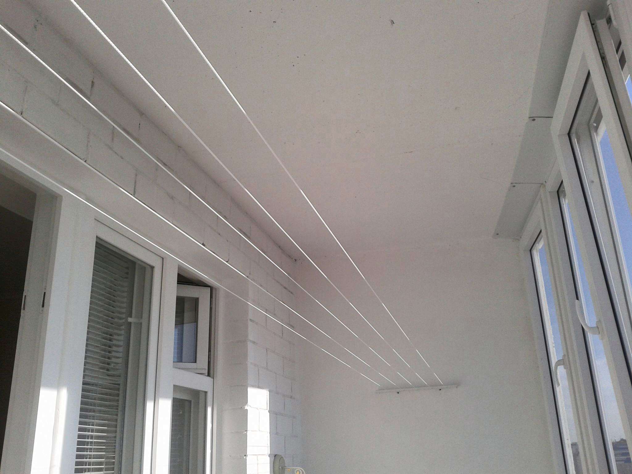 - короткая бельевая веревка (из-за того, что стенки балкона зачастую не способны выдерживать большой нагрузки, расстояние между креплениями приходится делать минимальным).