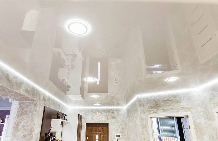 Потолок со светлой глянцевой поверхностьюИсточник chudopotolok.ru