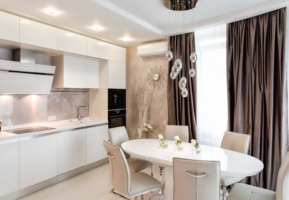 Самой подходящей является мебель линейной конфигурации длиной от 2,5 до 3 метров. Если длина гарнитура превышает 3 метра, вам будет трудно добиться функциональности.
