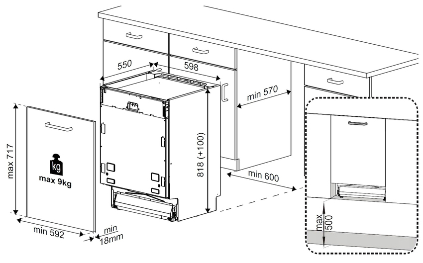 Установить посудомоечную машину под столешницу. Встраиваем посудомойку под крышку столешницы