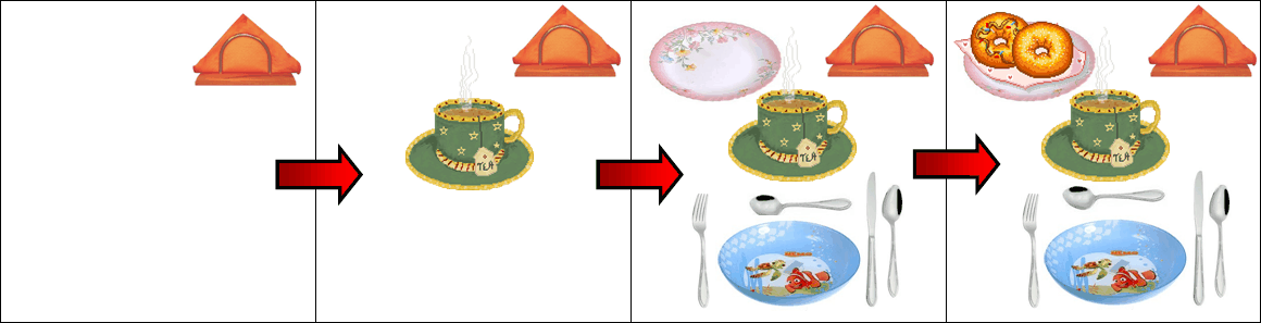 Кстати, в этом возрасте дети могут начинать дежурить в столовой — разносить салфетки и столовые приборы. Если вы не хотите, чтобы малыши запутались, лучше предложить им наглядную схему.