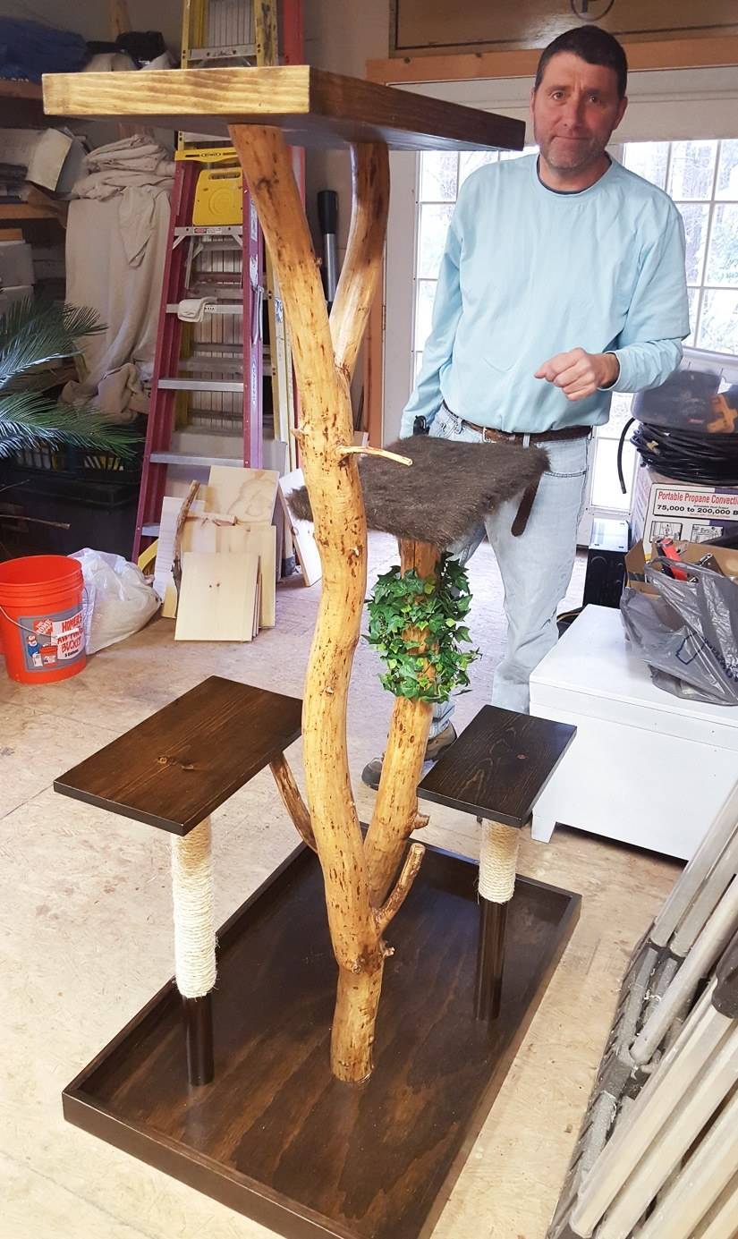 Активные животные очень любят взбираться на деревья. Так почему бы не попробовать смастерить деревце для вашего питомца прям на дому? Заодно и приукрасить интерьер живым природным уголком.