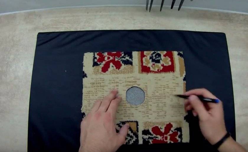 Найдите на листе фанеры середину, вырежьте окружность торцевой пилой или круглой насадкой на дрель.