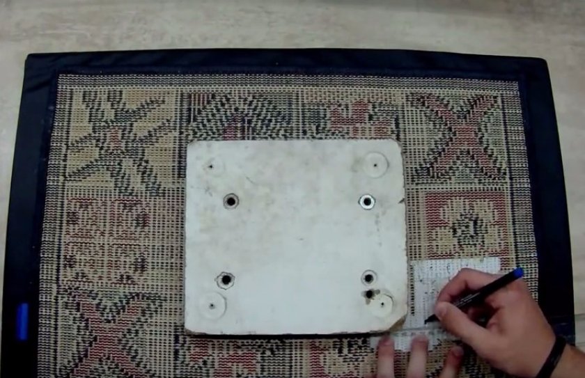 - Поставить полученную подушку на бумагу, обвести карандашом. Вырезать дно, прикрепить основание.