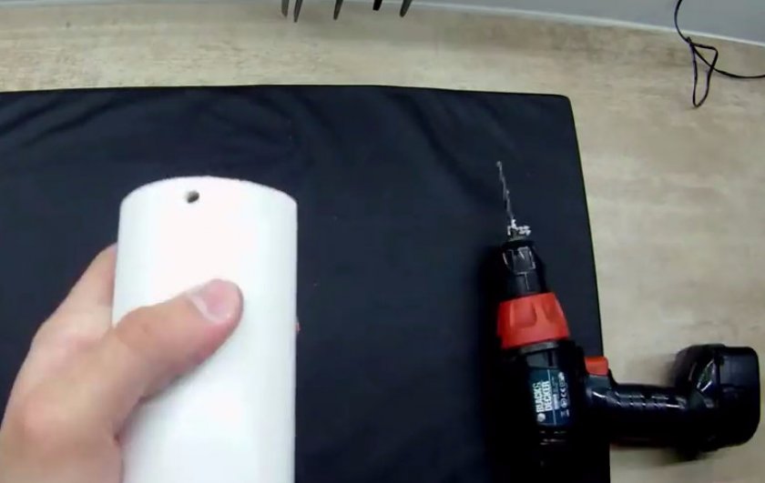 - Чтобы аксессуар можно было подвесить, например, на ручке двери, нужно закрепить верёвку в проделанных ранее отверстиях.