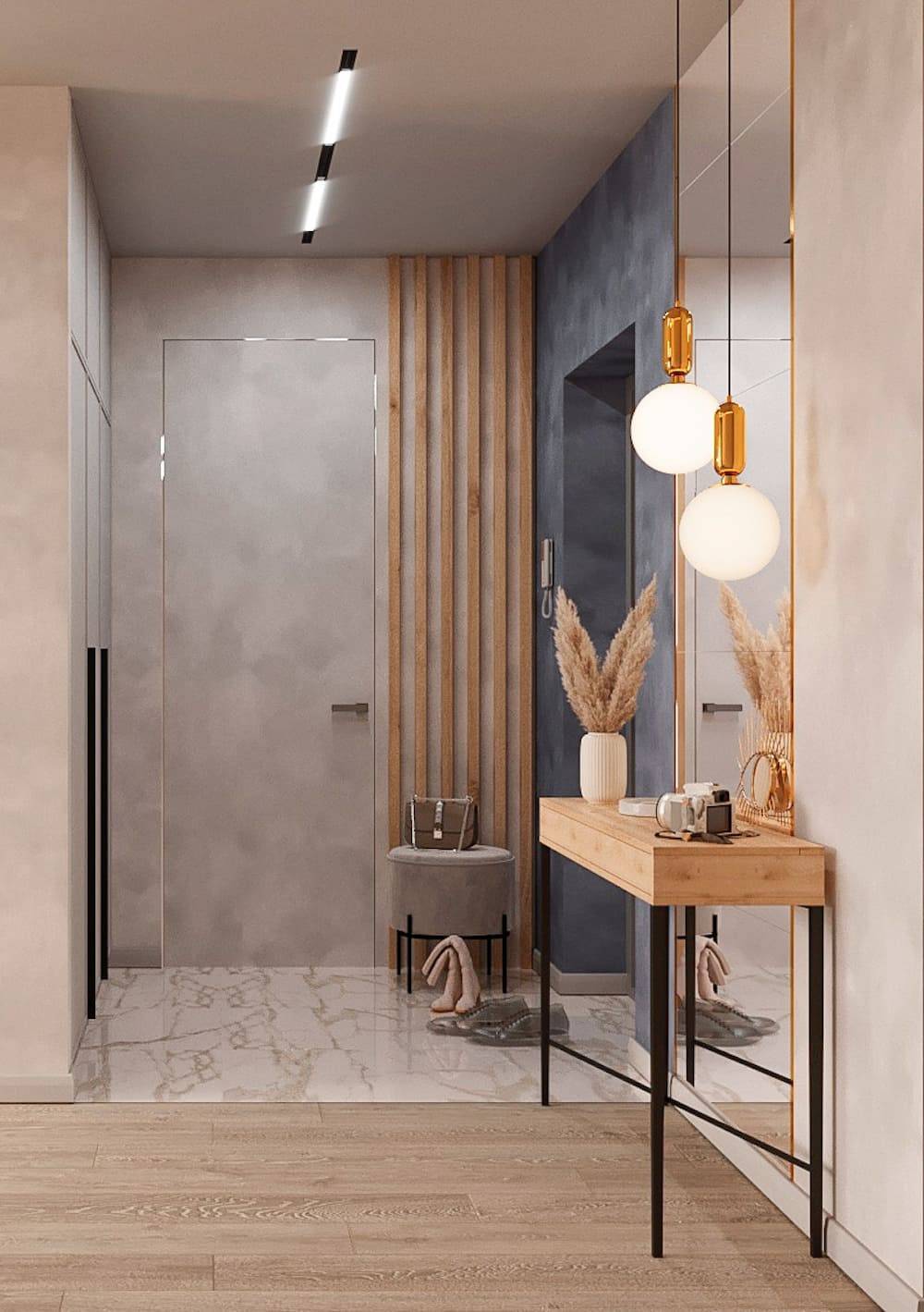 Нейтральная цветовая палитра радует глаз, теплая и манящая, как того требует современная прихожая 2020 года.