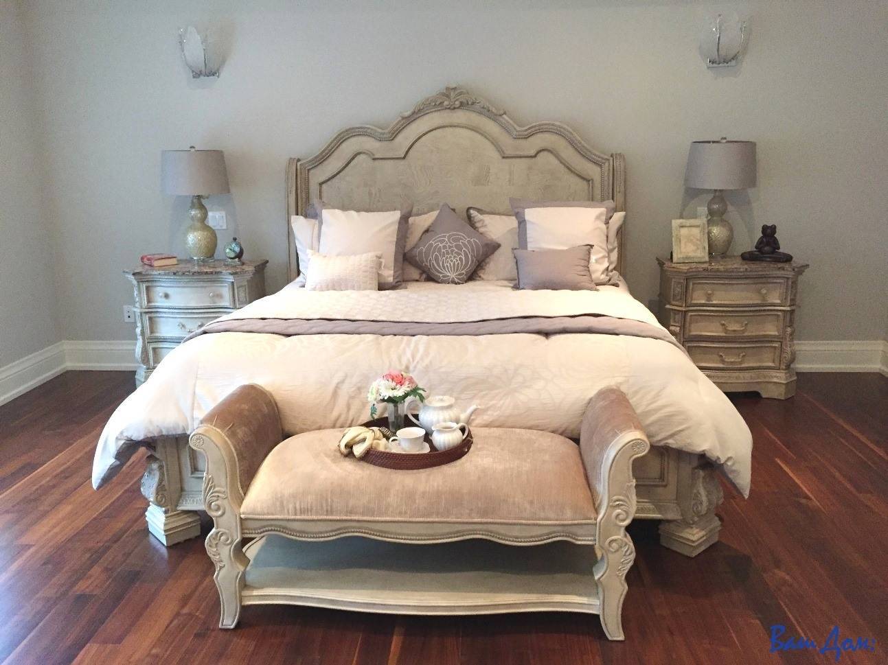 Если кровать огромна, а прикроватные тумбочки миниатюрны, возникает визуальный дисбаланс, что нежелательно, особенно если речь идет о создании элегантной спальни с элементами современной классики.