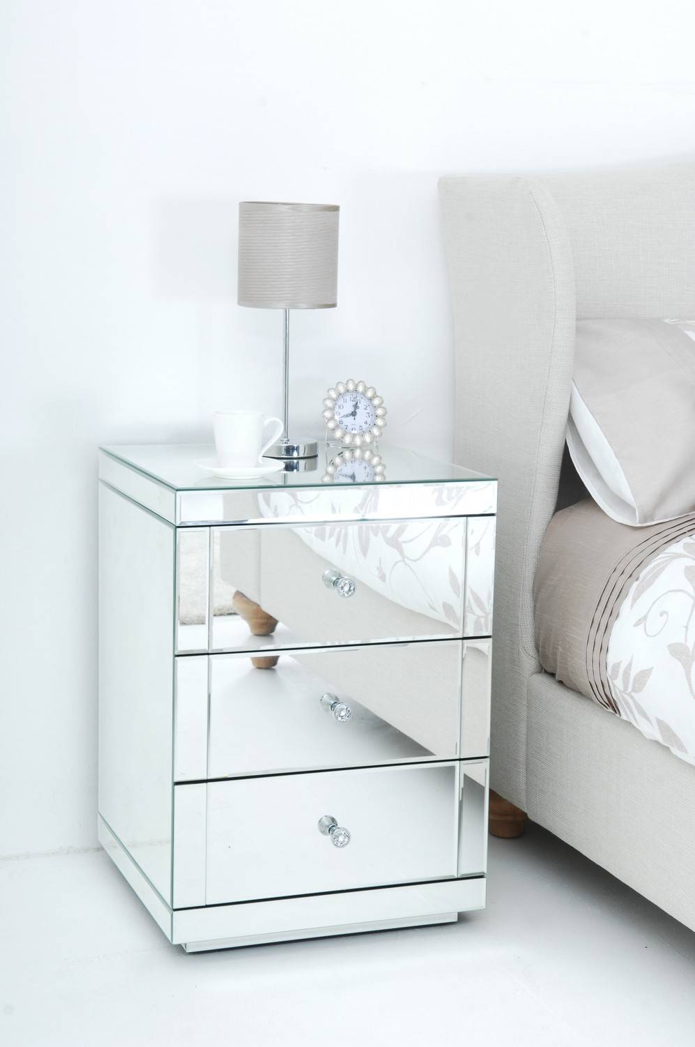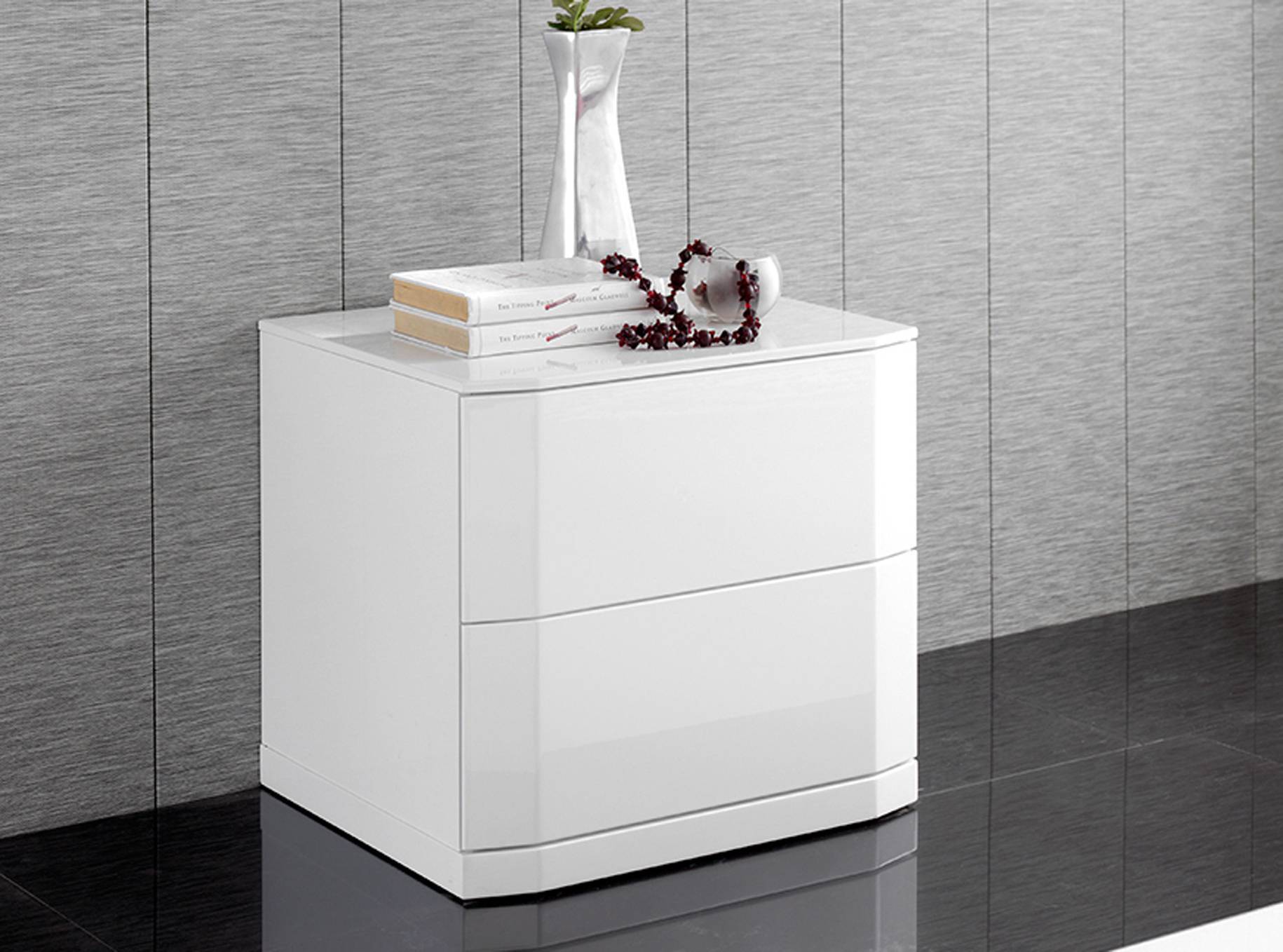 Зеркальные, стеклянные и глянцевые белые или серые тумбочки подходят практически к любым кроватям. По соседству с изголовьем, обитым тканью, отлично смотрится гладкая крашеная мебель. Композиции, построенные на объединении разных фактур, всегда наиболее эффектны.