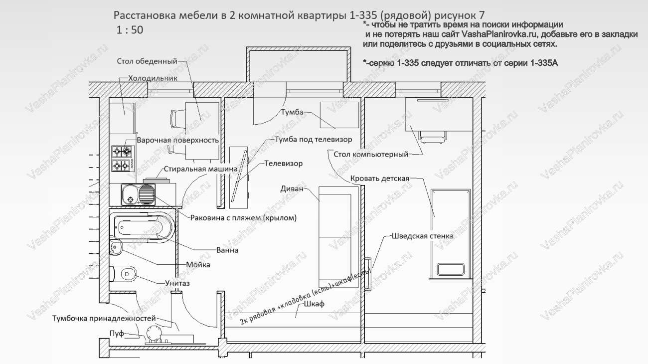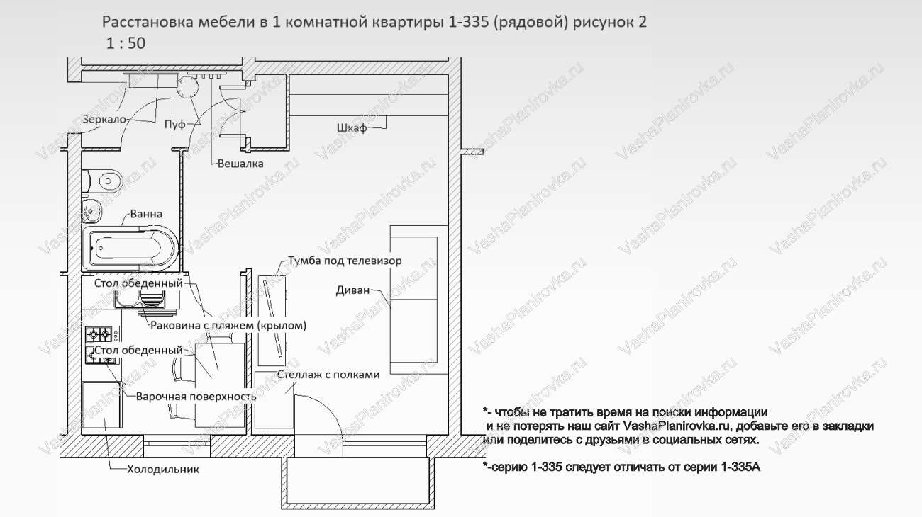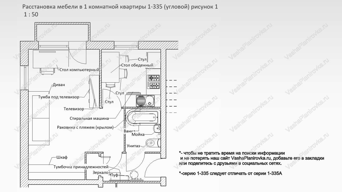 Расстановка мебели в хрущевке серии i-335