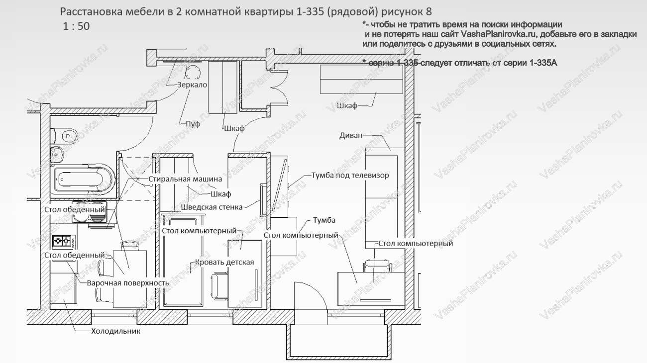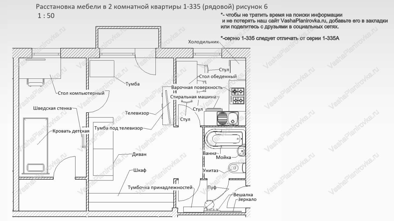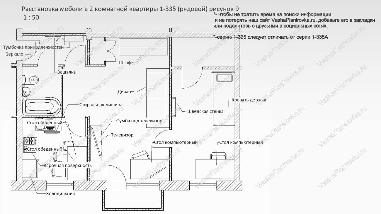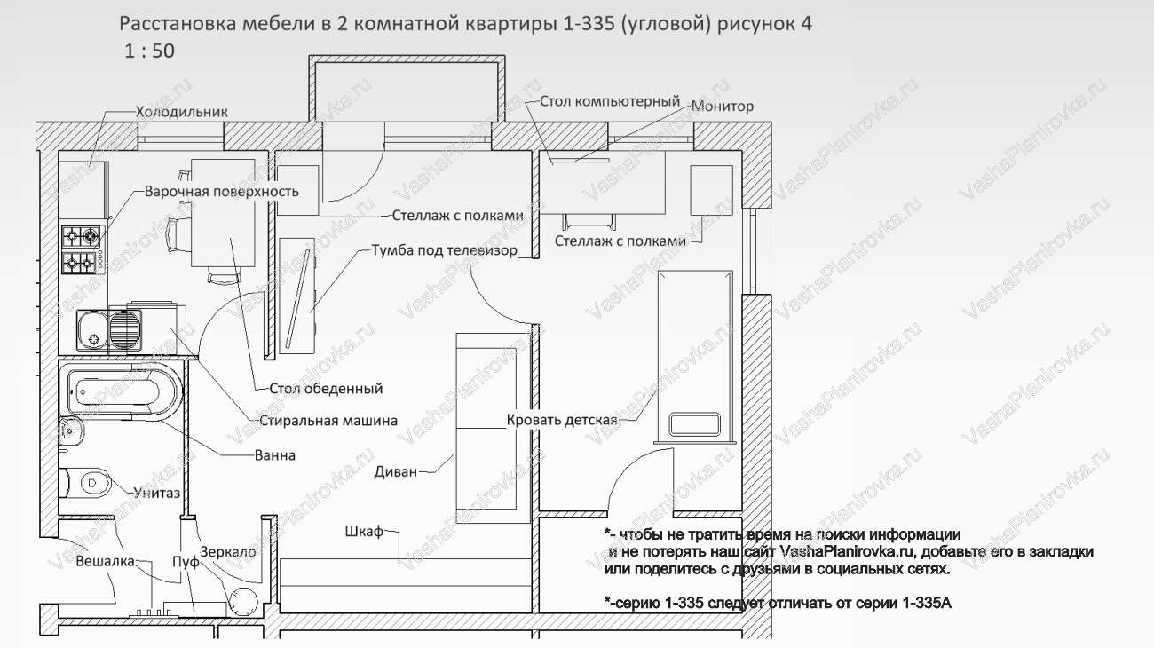 Расстановка мебели в хрущевке серии i-335