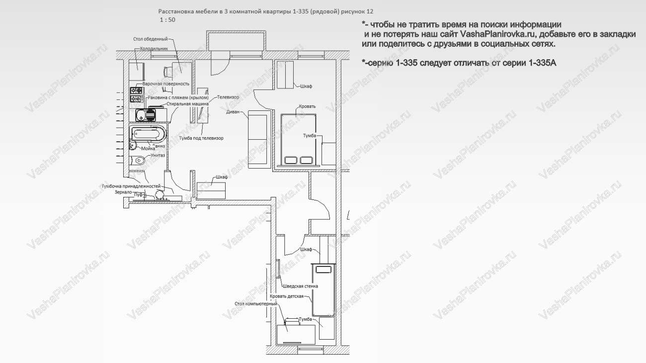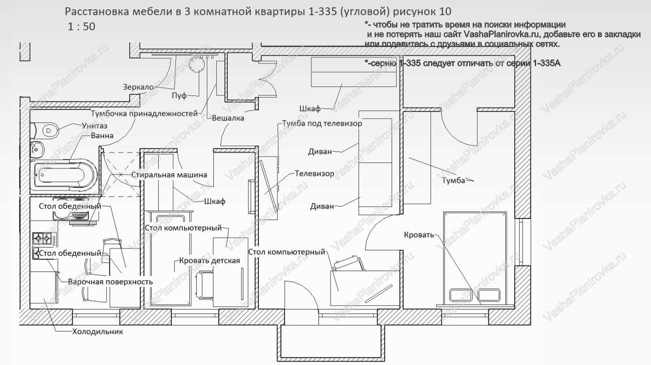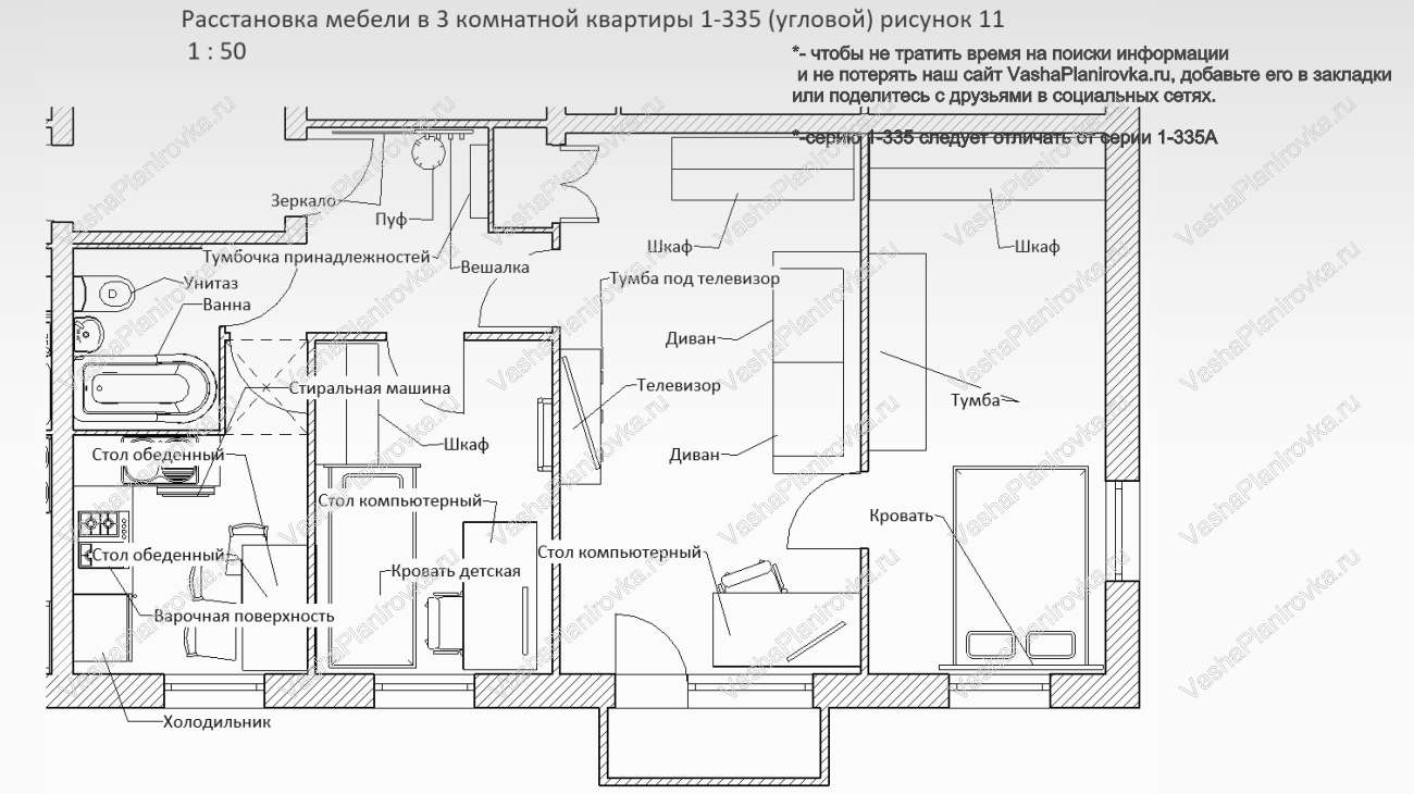 И-335 расположение мебели в трешке угловой