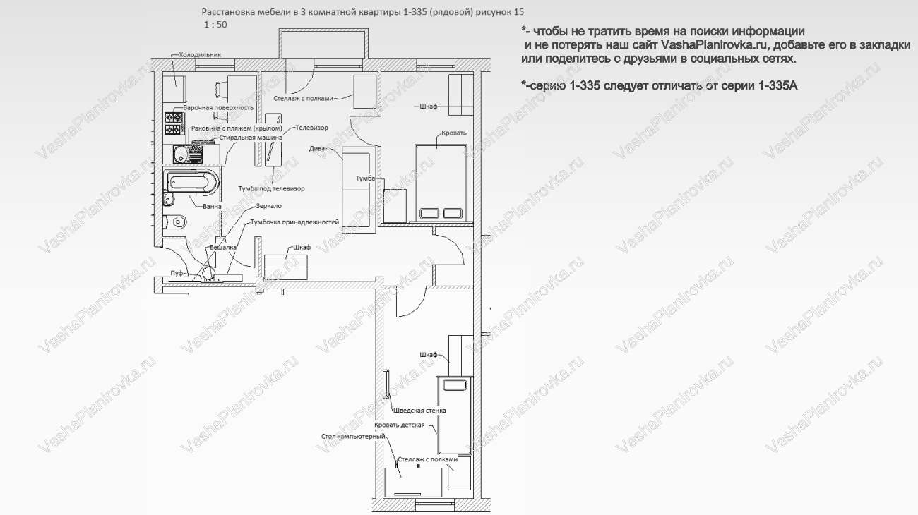 i 335 й серии размещение мебели в 3 х комнатной квартире (в центре)