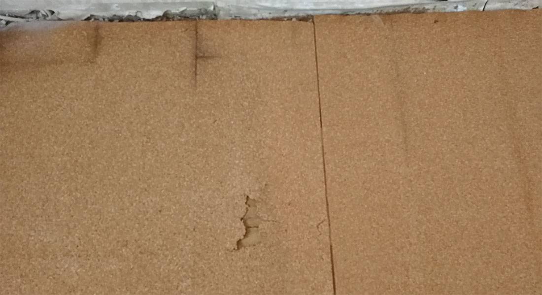 - Несмотря на упругость и эластичность, пробка чувствительна к повышенным механическим нагрузкам и повреждениям. Например, массивная мебель на металлических ножках, женские каблучки, когти животных способны нарушить целостность материала. Восстановить поврежденный участок можно при помощи специальных средств либо наклеив небольшой кусочек аналогичного покрытия. Но нет гарантии, что дефект будет устранен идеально.